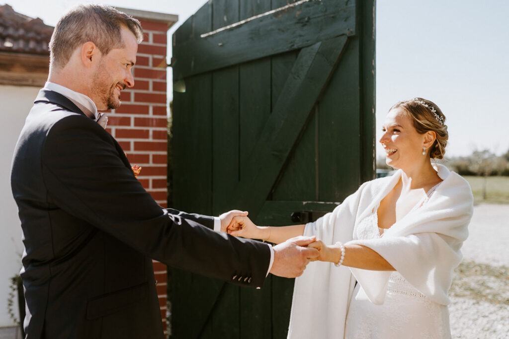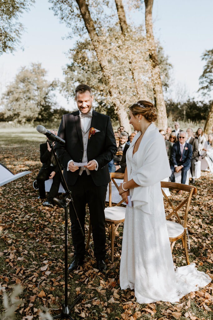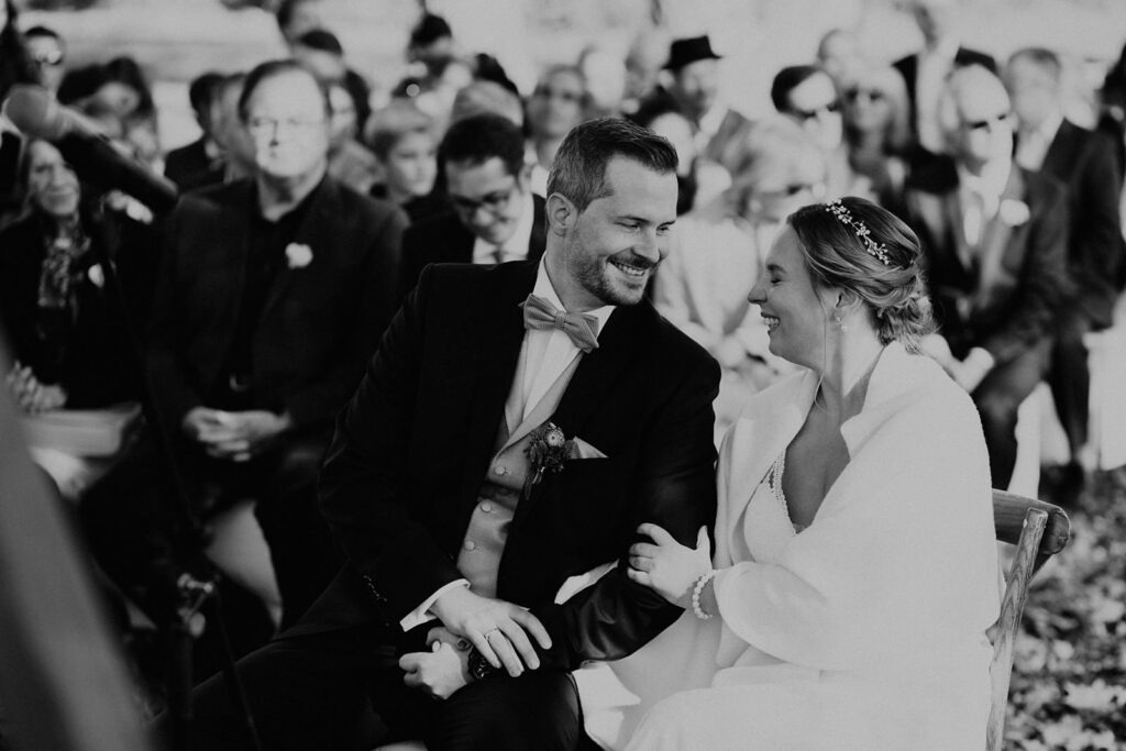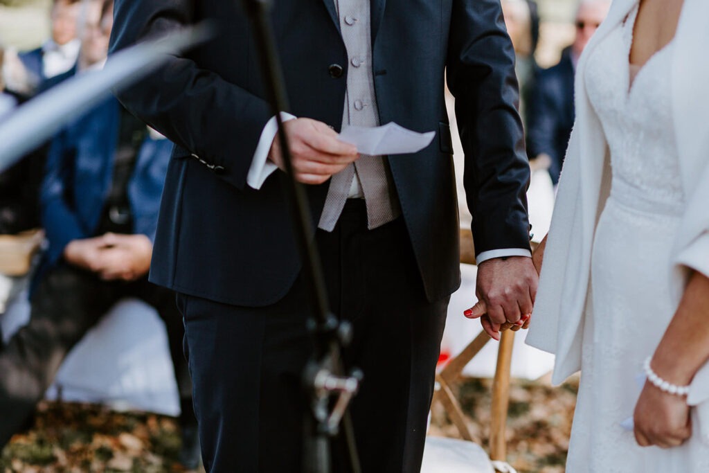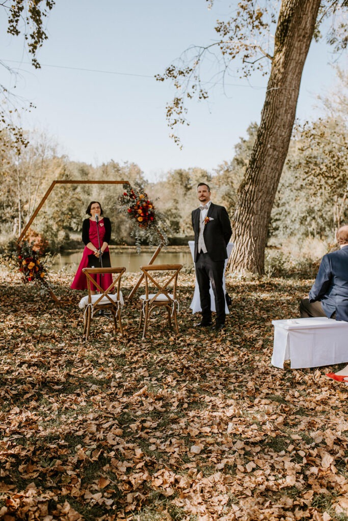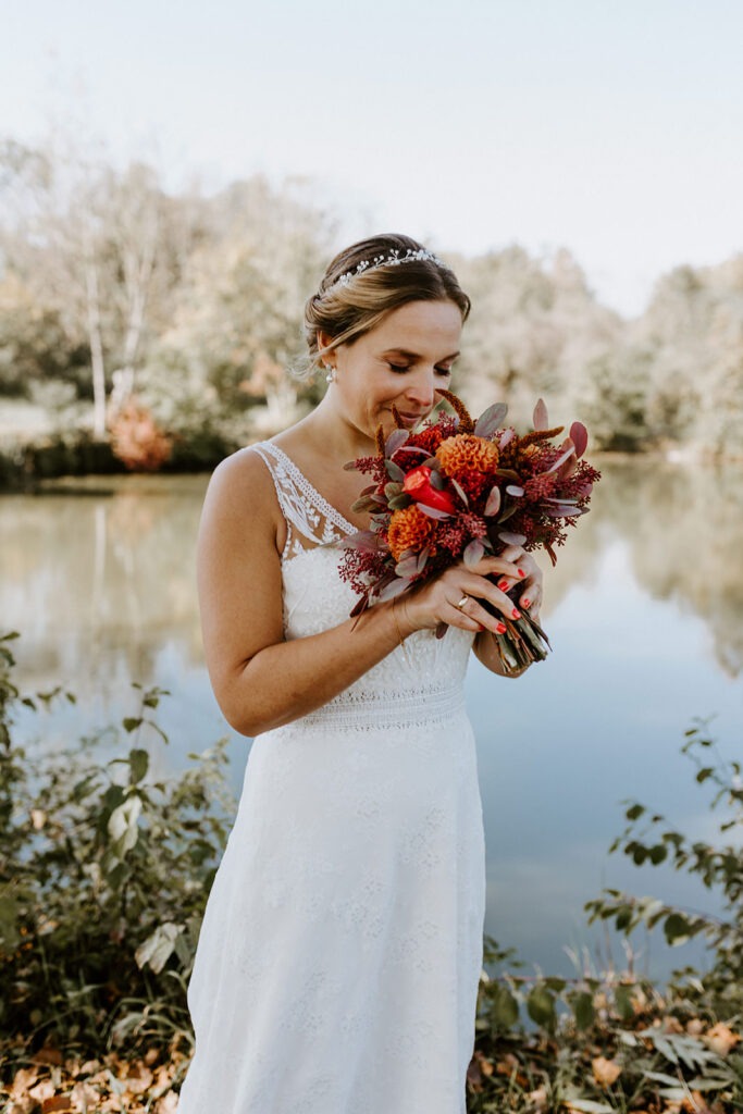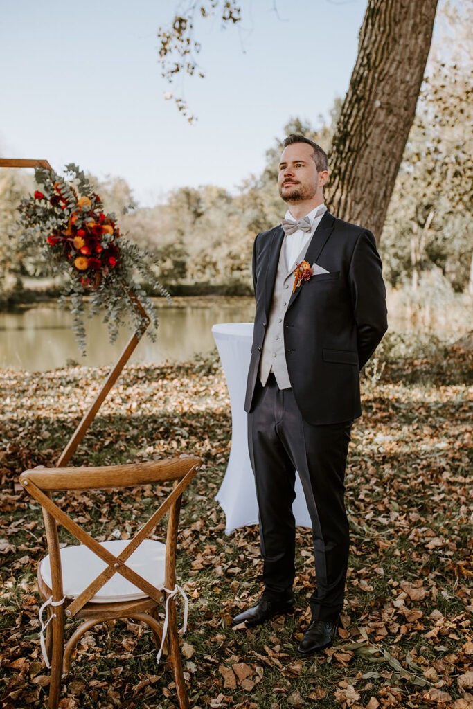 First-Look Shooting gemacht, bevor die freie Trauung startete. Diese fand direkt am kleinen idyllischen See an der Kaltmühle statt.