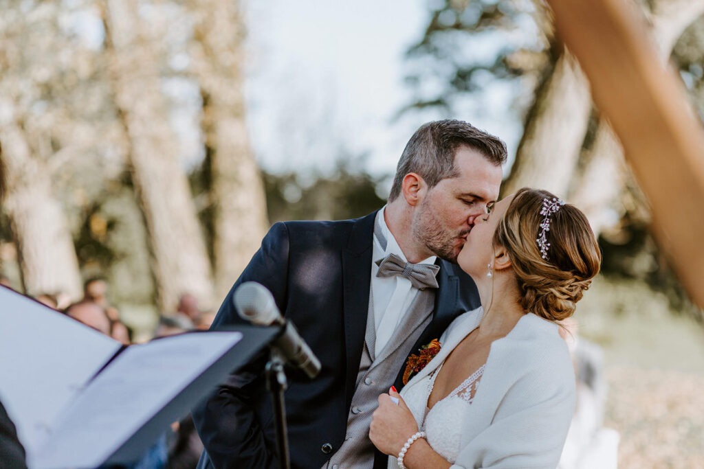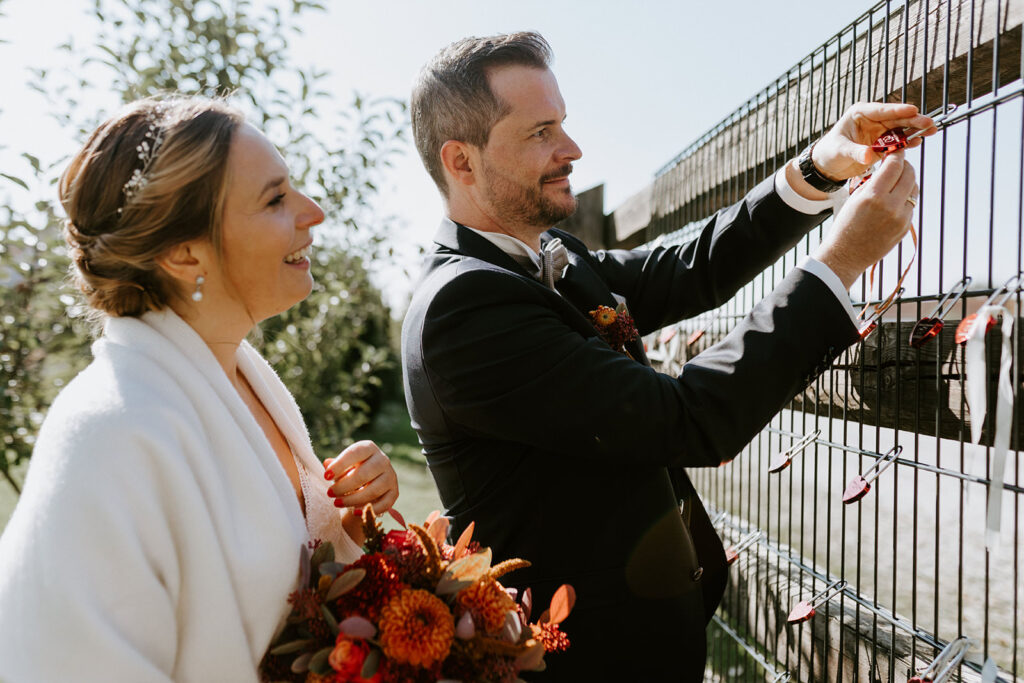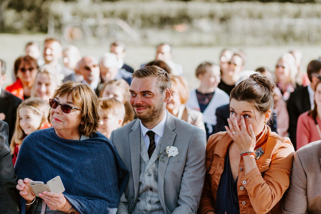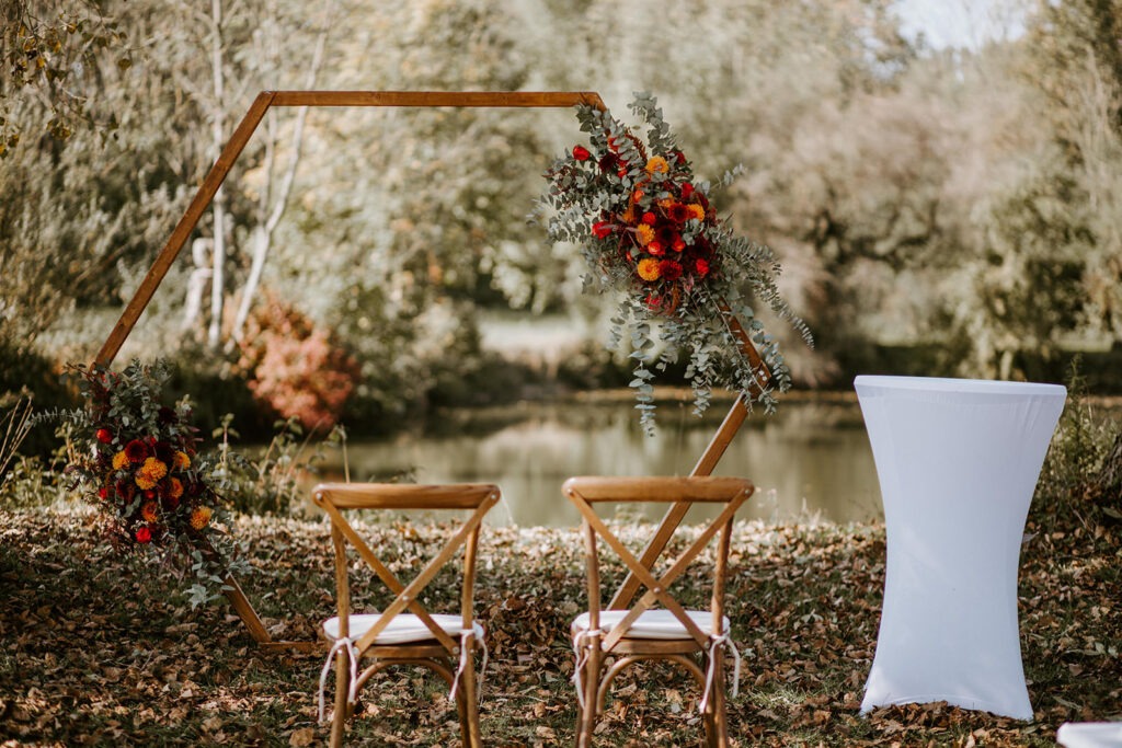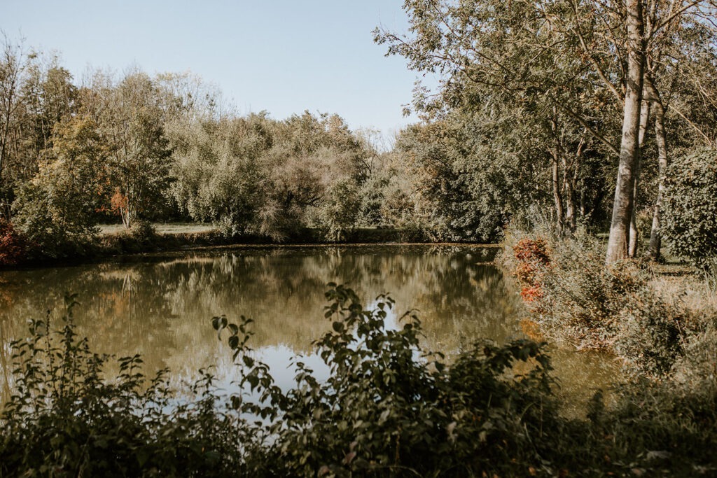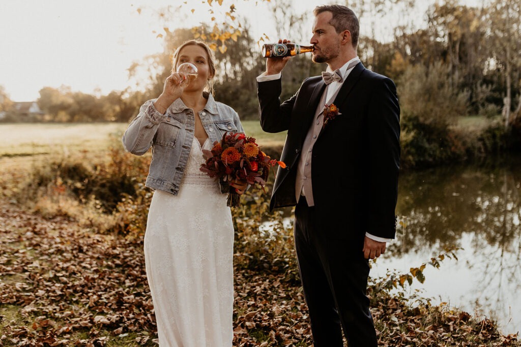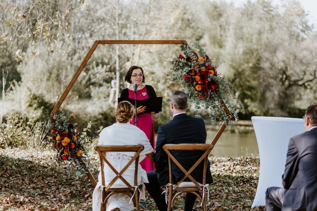 First-Look Shooting gemacht, bevor die freie Trauung startete. Diese fand direkt am kleinen idyllischen See an der Kaltmühle statt.