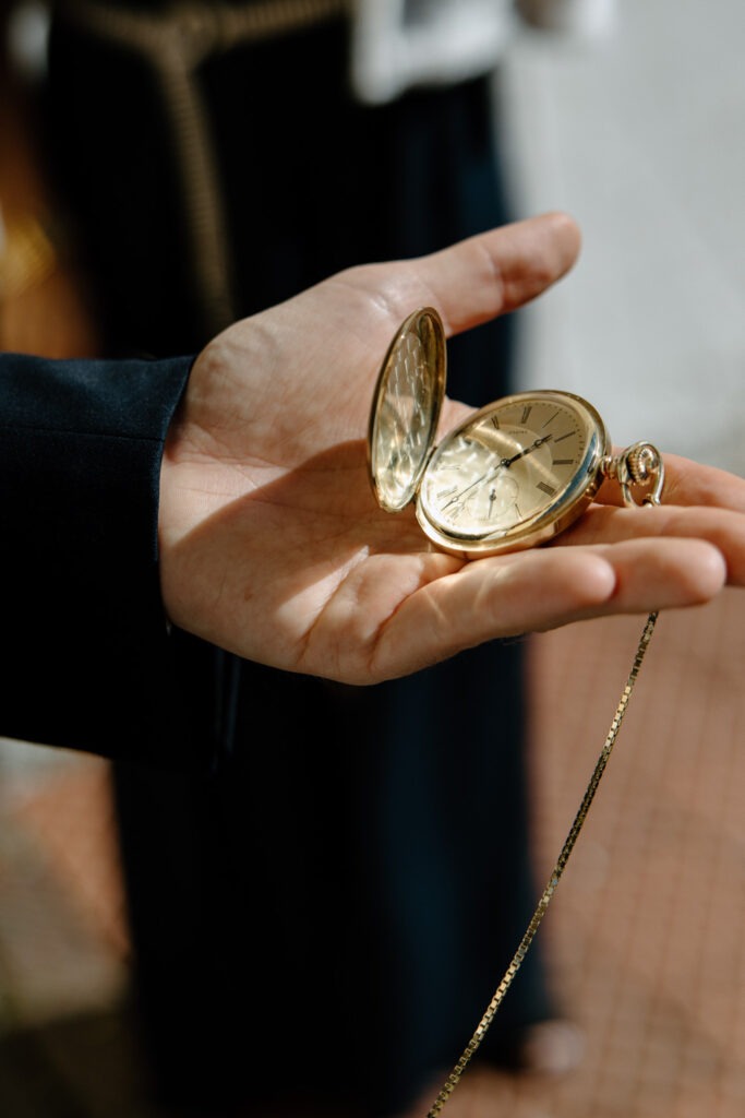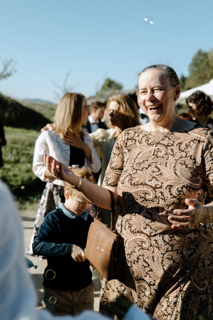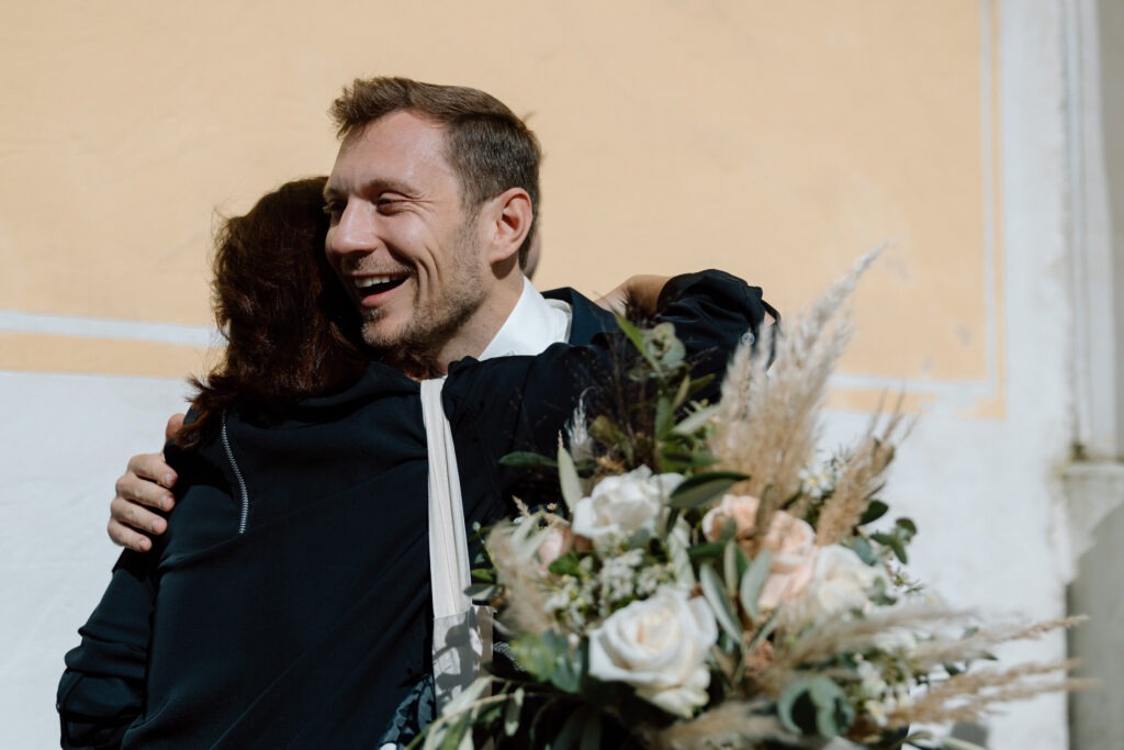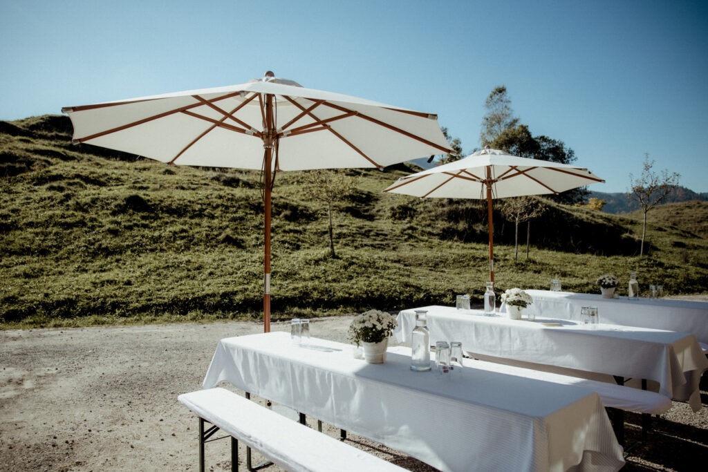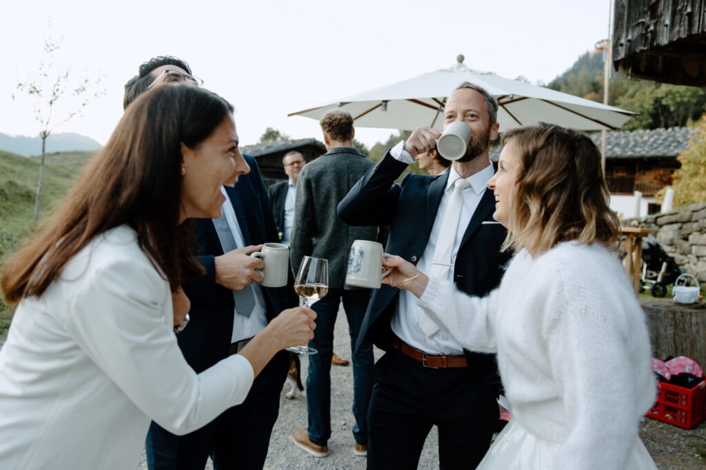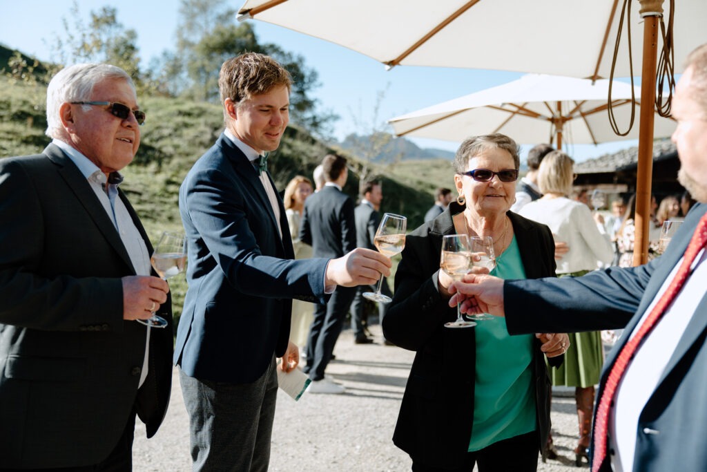 Das Wetter war so schön und warm, dass der Sektempfang draußen stattfinden konnte.