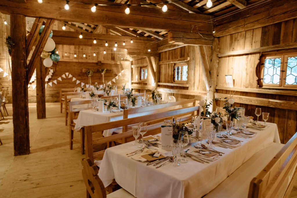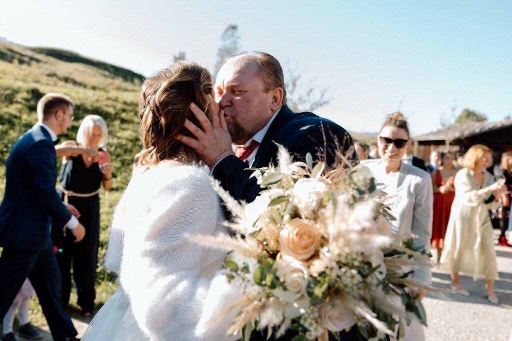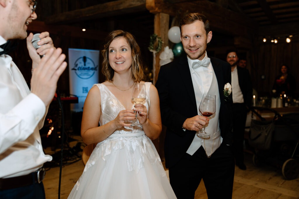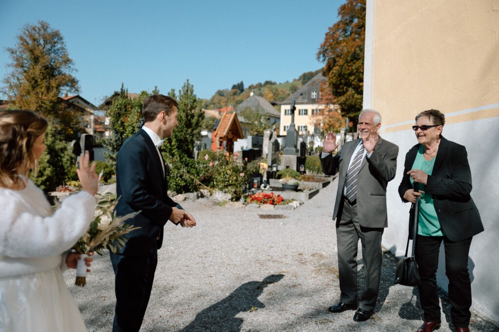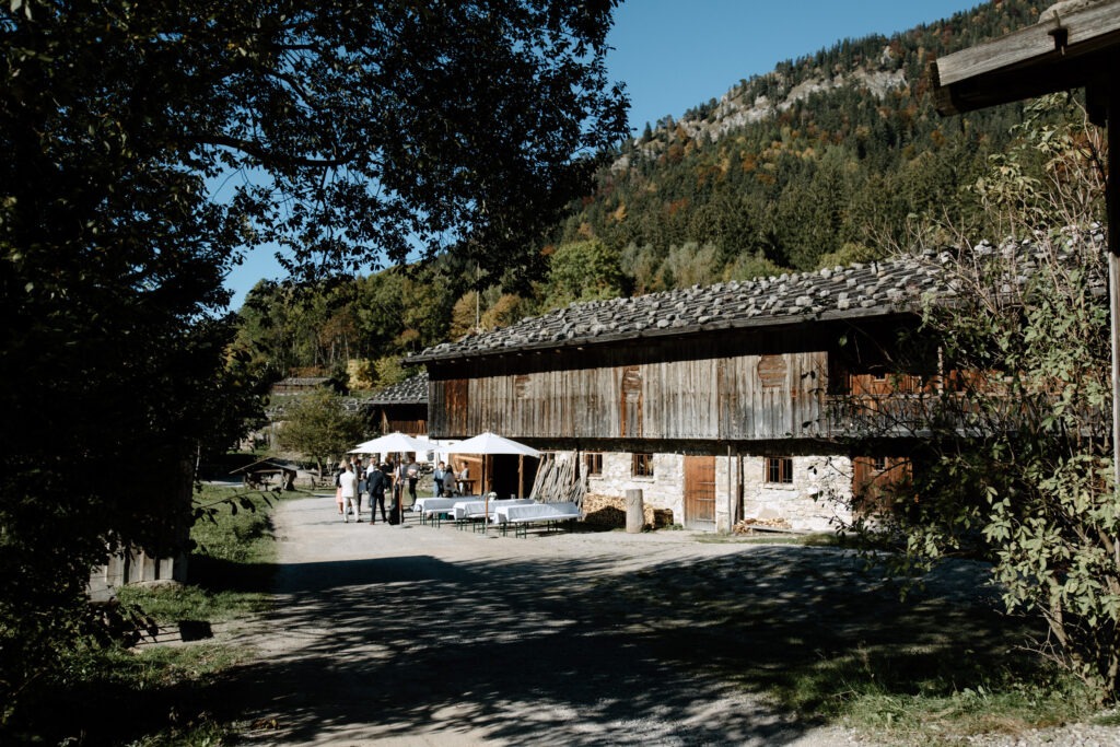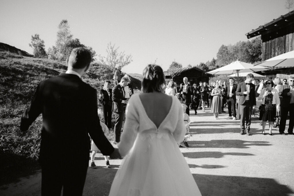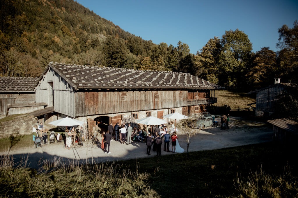 Nach der Zeremonie fuhr das Brautpaar in einem nostalgischen VW Käfer zum Freilichtmuseum Markus Wasmeier, wo die Feier stattfand.