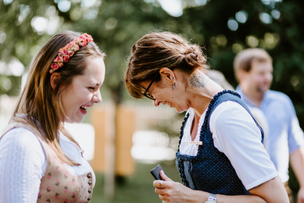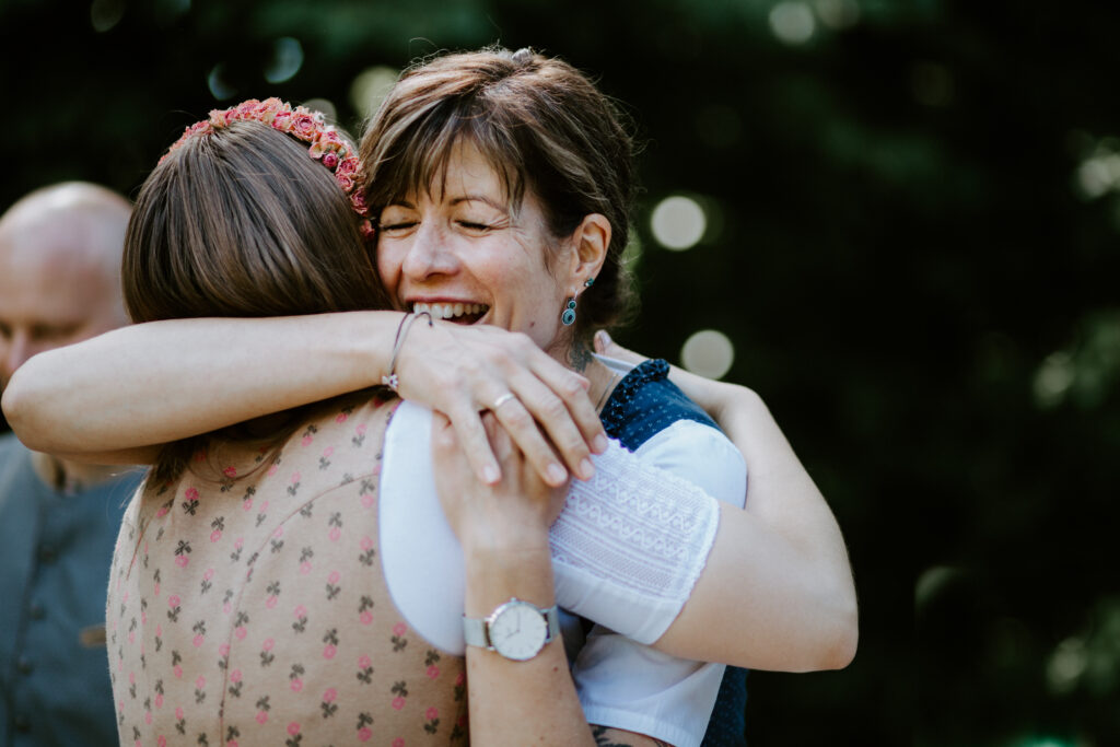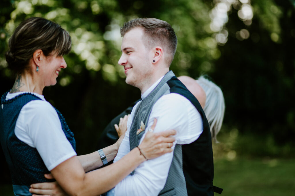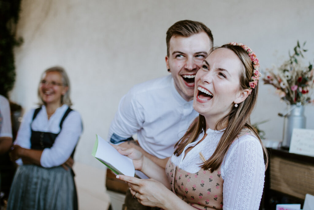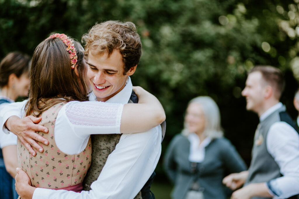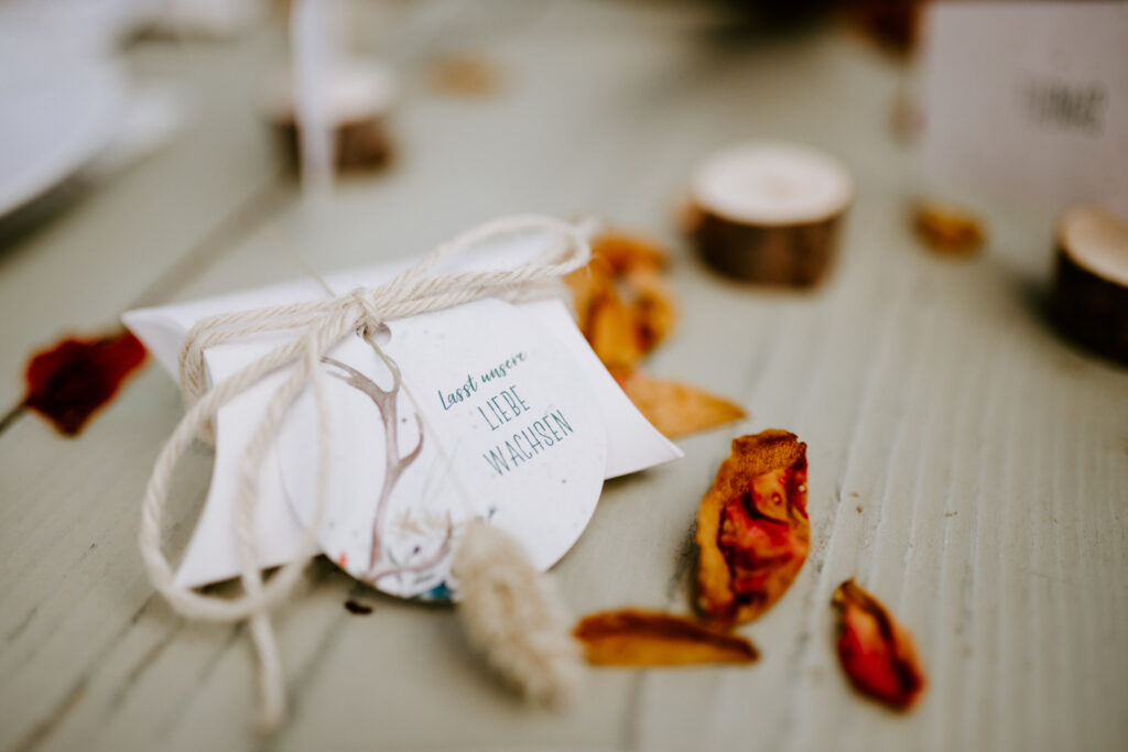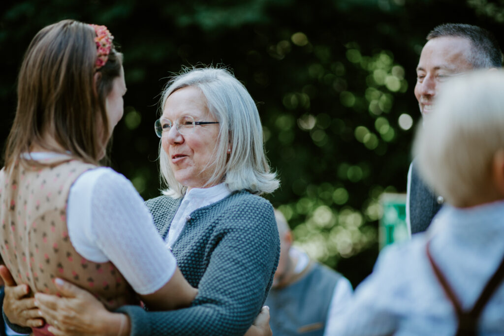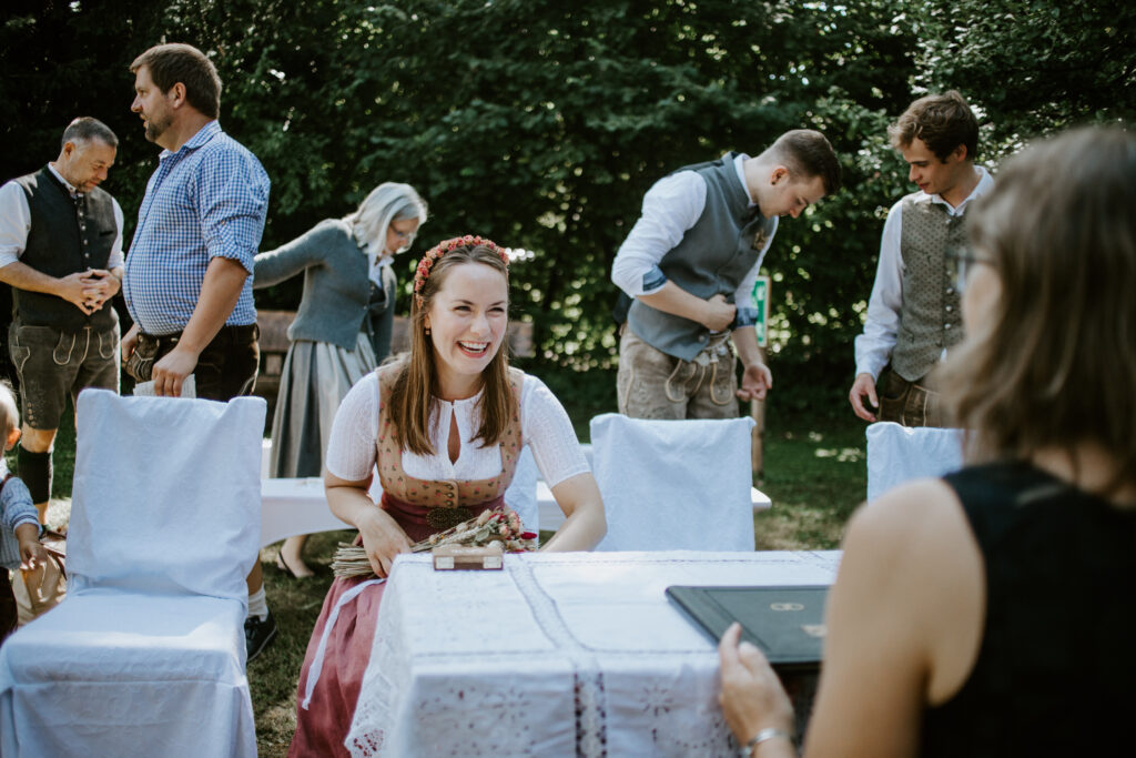 Hier gaben sich die beiden im idyllischen Garten unter dem Apfelbaum das Ja-Wort. Für das Eheversprechen haben sich Julia und Tobias etwas besonderes einfallen lassen, sie haben sich gegenseitig einen Brief mit persönlichen Worten geschrieben, den sie für sich selbst während der Trauung durchlasen. Außerdem hat jeder Gast auch einen eigenen persönlichen Brief vom Brautpaar erhalten.