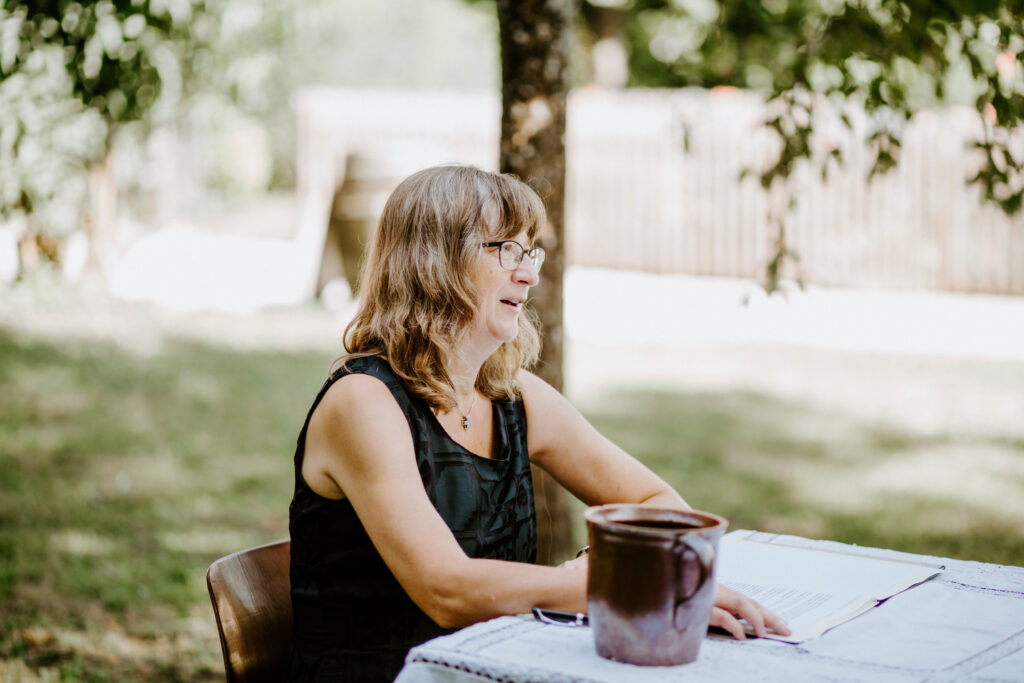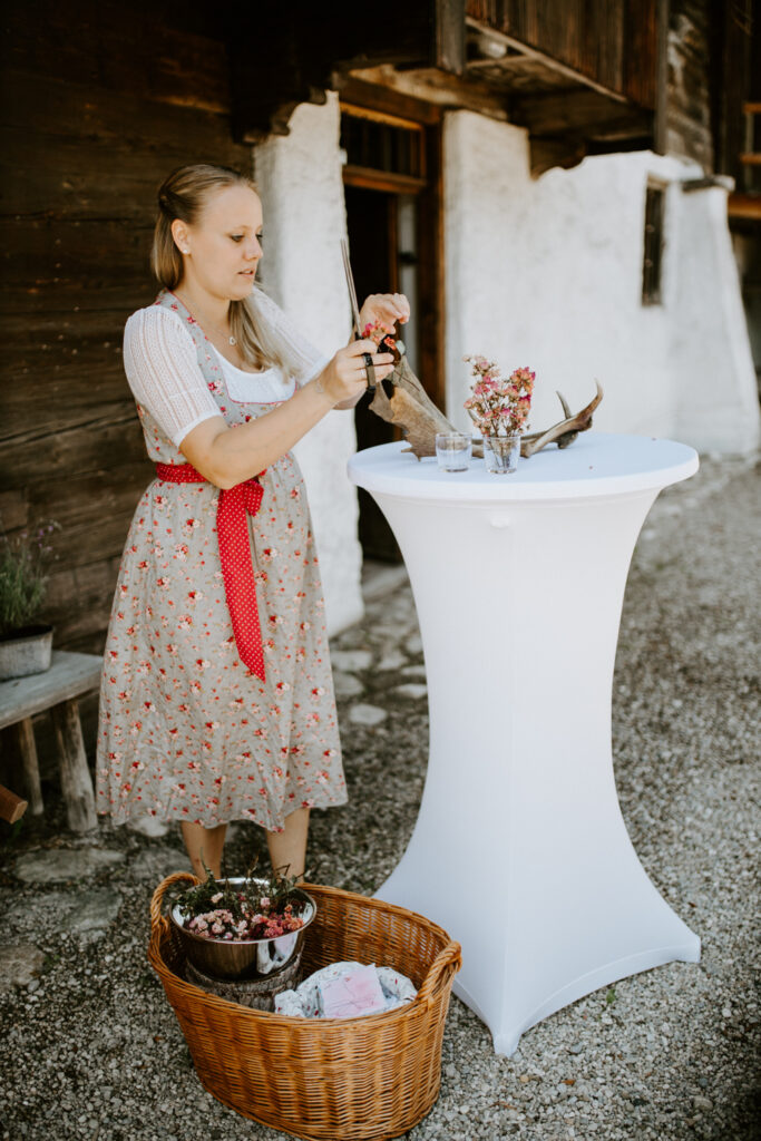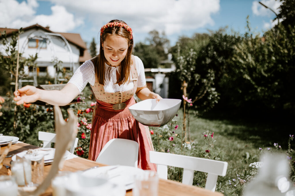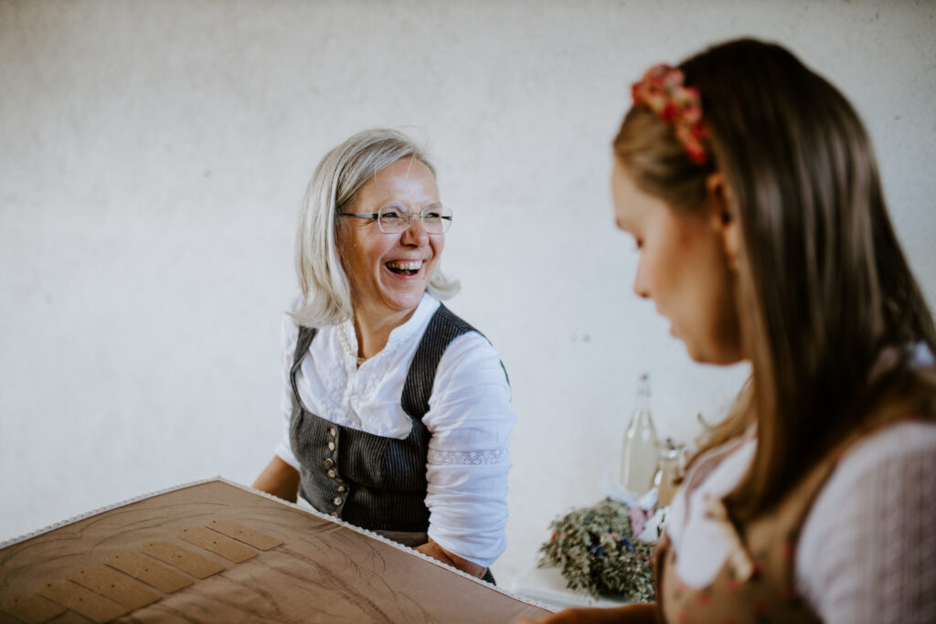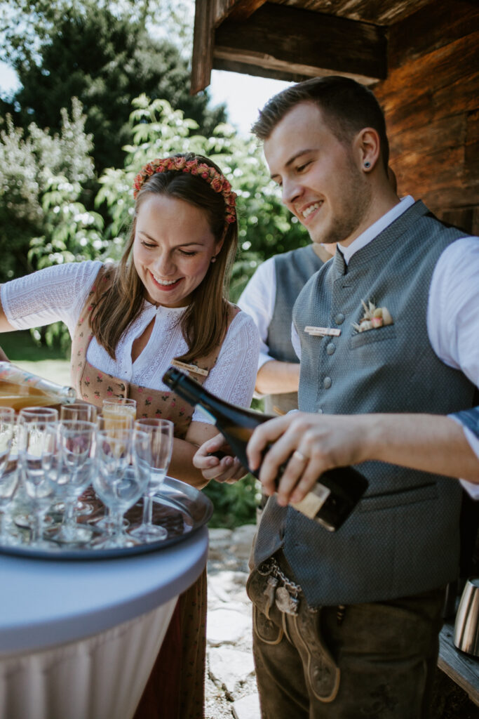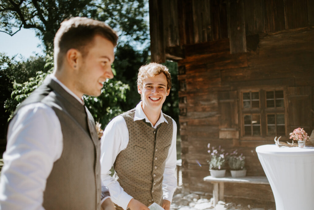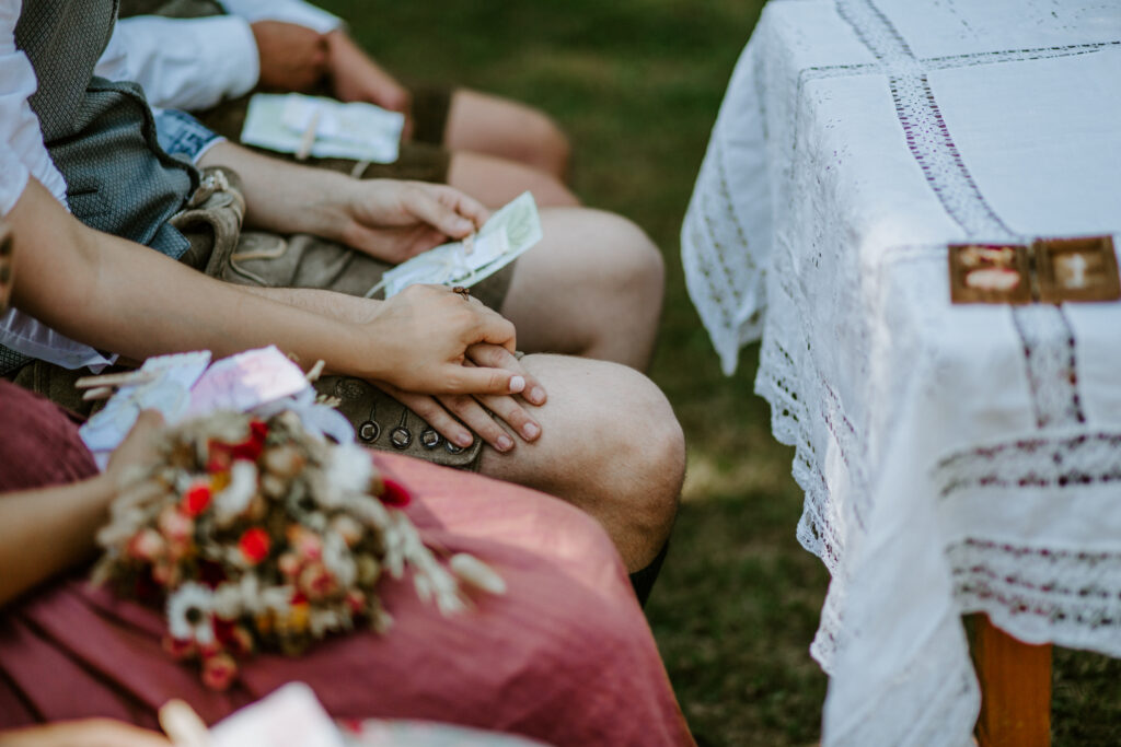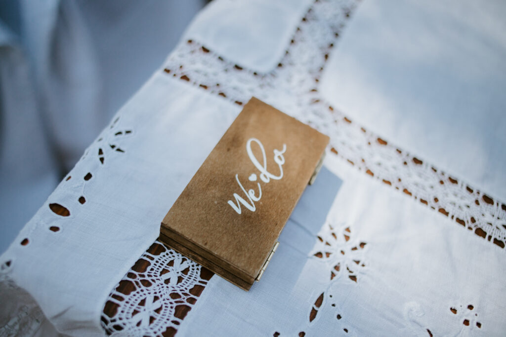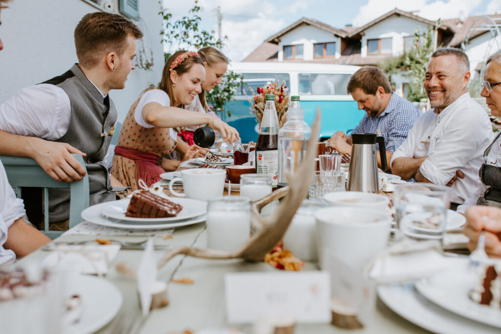 Hier gaben sich die beiden im idyllischen Garten unter dem Apfelbaum das Ja-Wort. Für das Eheversprechen haben sich Julia und Tobias etwas besonderes einfallen lassen, sie haben sich gegenseitig einen Brief mit persönlichen Worten geschrieben, den sie für sich selbst während der Trauung durchlasen. Außerdem hat jeder Gast auch einen eigenen persönlichen Brief vom Brautpaar erhalten.