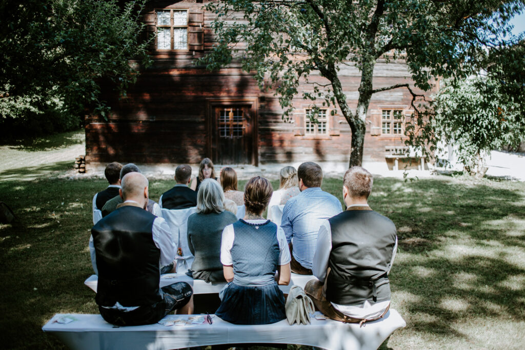 Nach der Trauung gab es einen ganz entspannten Sektempfang im Museumsgarten.